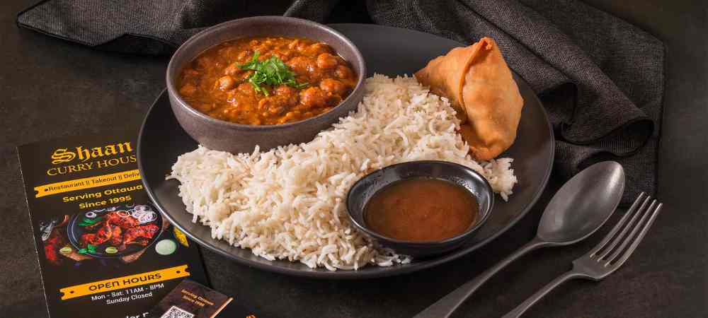 2 Choice of Curry [Veg or Non Veg] Served with Lentils, Rice, Salad, 2 Naan Bread, 2 Samosa, 2 Gulab Jamun & Signature Sauces & Green Chutney.