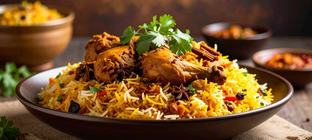 Boneless Chicken with a mild sweetness imparted by the dried plums, kewra essence, and fried onions used in its preparation. Later traditionally cooked over an open fire pan with Basmati Rice. Served with spiced yoghurt. Special Mint Chutney also available upon request.